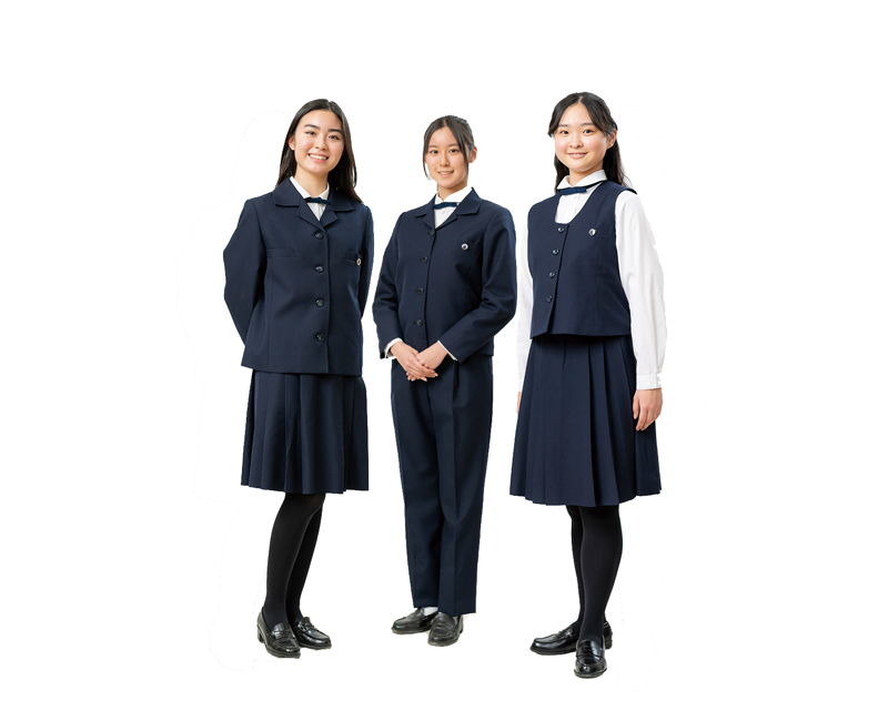 桑沢洋子氏(女子美の卒業生であり、学校法人桑沢学園の創立者)のデザインによる制服。ブラウスに上着、ジレーを自由に組み合わせて着用する。襟元のネクタイは、大学の工芸学科のOGによる手織で、中学生はエンジ色、高校生は紺色となっている。流行に左右されない機能的な美しさが特徴だ。また2023年4月からスラックスが登場。女子美らしさが広がっている。