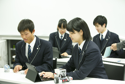 同校では、教育改革の1つとして、生徒が主体的に問題解決を行う授業を実施。「ある課題に対して、自分で考えたり、グループで意見を交換したりして答えを導き、発表やプレゼンをする授業を行っています。現代の激動の社会を生き抜くには、自ら考えて行動する力を身につけることが何よりも重要です。そのためにも、習得した知識を活かす学びを積極的に取り入れています」と松谷校長先生。