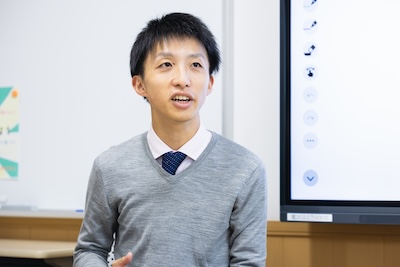 僕は学校説明会に来たときにSAについて知って、その時から興味を持っていました。説明会が終わった後に校内見学があって、質問したことに対してきちんと受け答えをしてくれて、良いところだなと思いました。入学してすぐに応募があったのでやってみようと。積極的に活動しています!