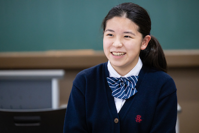 Kさん 中学は共学だったので、女子校は初めてでした。中学までは男子からバカにされるのではないかと不安になっていて、このような場でも話すことができませんでした。この学校では、恥ずかしくても発言したらみんなちゃんと聞いてくれて、バカにされるようなこともありません。女子だけの環境だったから、信頼関係が作れたと思います。そのような環境だったから、私は変わることができました。