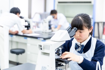 また、STEAM教育をはじめ、大学と連携した体験学習にも力を入れている。具体的には、中3のMGSクラスを対象に東京農業大学と生物学の連携授業をい、高1ではプレゼンテーション講座などを実施。「東京農業大学の授業では、メダカの透明骨格標本を作り、大学の研究室へ訪問もします。プレゼンテーション講座は、大学の先生を招いて講義を受け、自分たちでテーマを設定し、まずはグループで発表。そしてクラス、学年全体へと、ステップアップしていきます。プレゼンテーション力をつけると、アクティブ・ラーニングの授業も活発に進みますね」