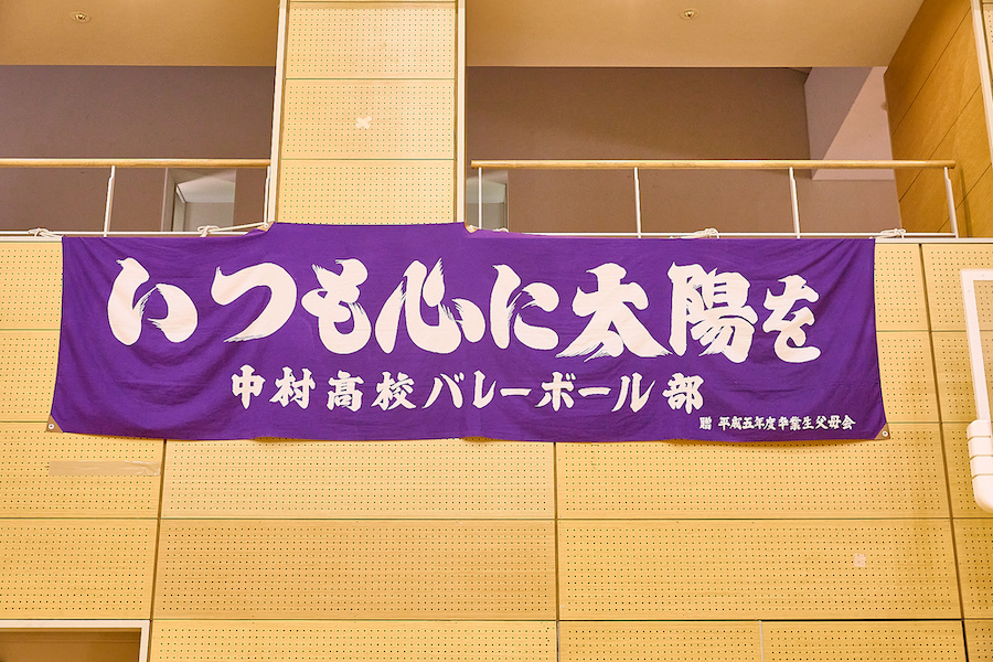 バレーボール部が練習する体育館には、「いつも心に太陽を」と書かれた横断幕が掲げられているが、これも卒業生の保護者から贈られたものだという。