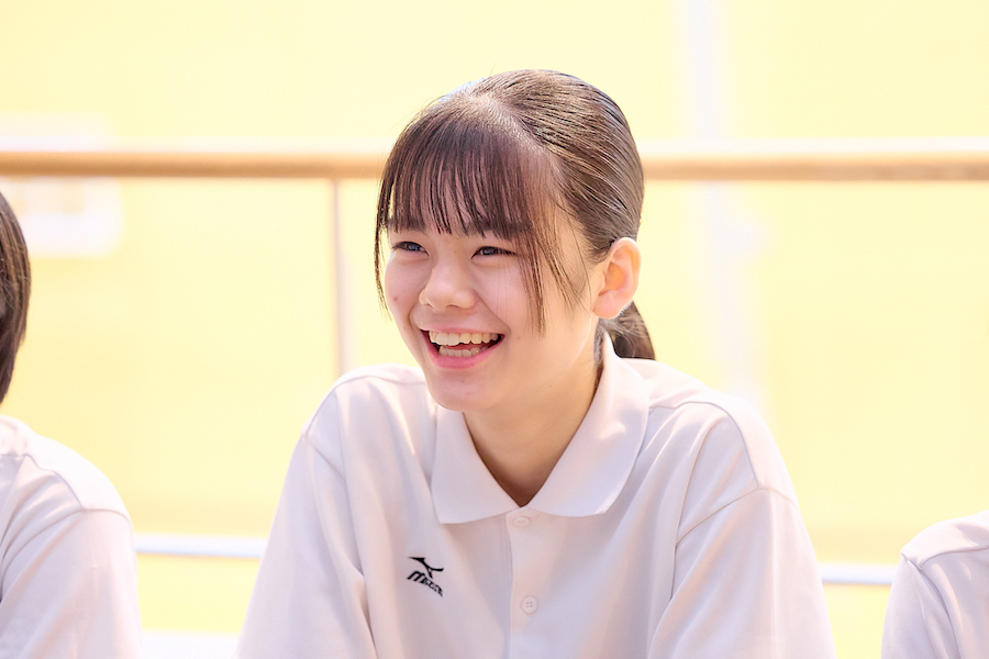 <Gさん> 私はバレーボール部に入る気はありませんでした。バドミントン部に入ろうと思っていて、入学前に中村先生にバトミントン部の活動日を聞いたら、なぜかバレーボール部の活動日を教えられました(笑)。入学したら担任が中村先生だったので、縁があったのかもしれません。バドミントン部を見に行ったら私には静かすぎて合わないなと感じ、隣で練習していたバレーボール部に行ってみたら、先輩がとても優しかったんです。先輩が優しかったから入部しましたが、今はスパイカーとして頑張っています。